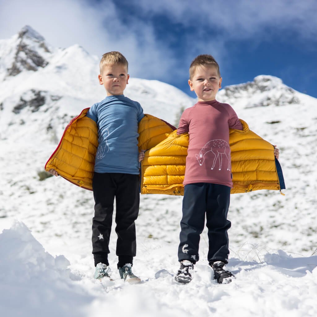 Bunda je větší a počítá s tím, že vydrží 2–3 sezóny. Číslování kopíruje naše merino kousky, proto nekupujte větší, dítě by v bundě plavalo. Ve velikosti 86/92 bundu stále obleče i dítko s velikostí 98. Velikost 98/104 zvládne i dítě vysoké 110 cm.