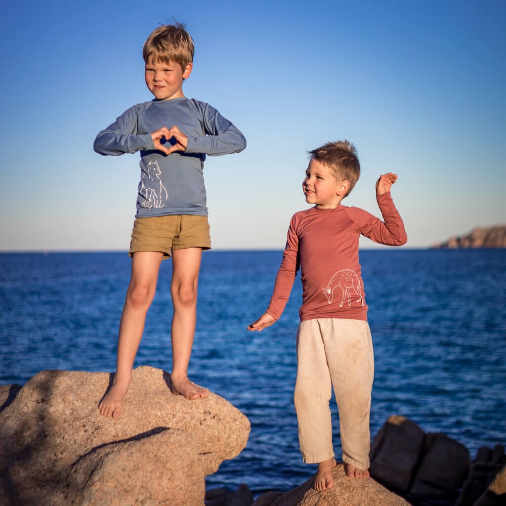 Všechny naše střihy jsou dělané jako rostoucí a vydrží 2–3 velikosti. Dbáme, aby se nikde nic nevyhrnovalo, nevylézalo a neškrtilo. Prodloužená délka, aby nelezla záda a střih kopírující tělo. Dítě je v teple, rodič v klidu. Dětské merino triko je ideální první vrstvou. Dá se nosit samostatně i pod mikinou. V ukrutných mrazech se pod něj vejde merino tílko. S merino legínami může klidně sloužit jako pyžamo.