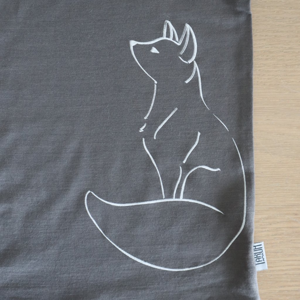 Dětské merino tričko s krátkým rukávem - taupe s liškou - 2 - zdvojený tisk